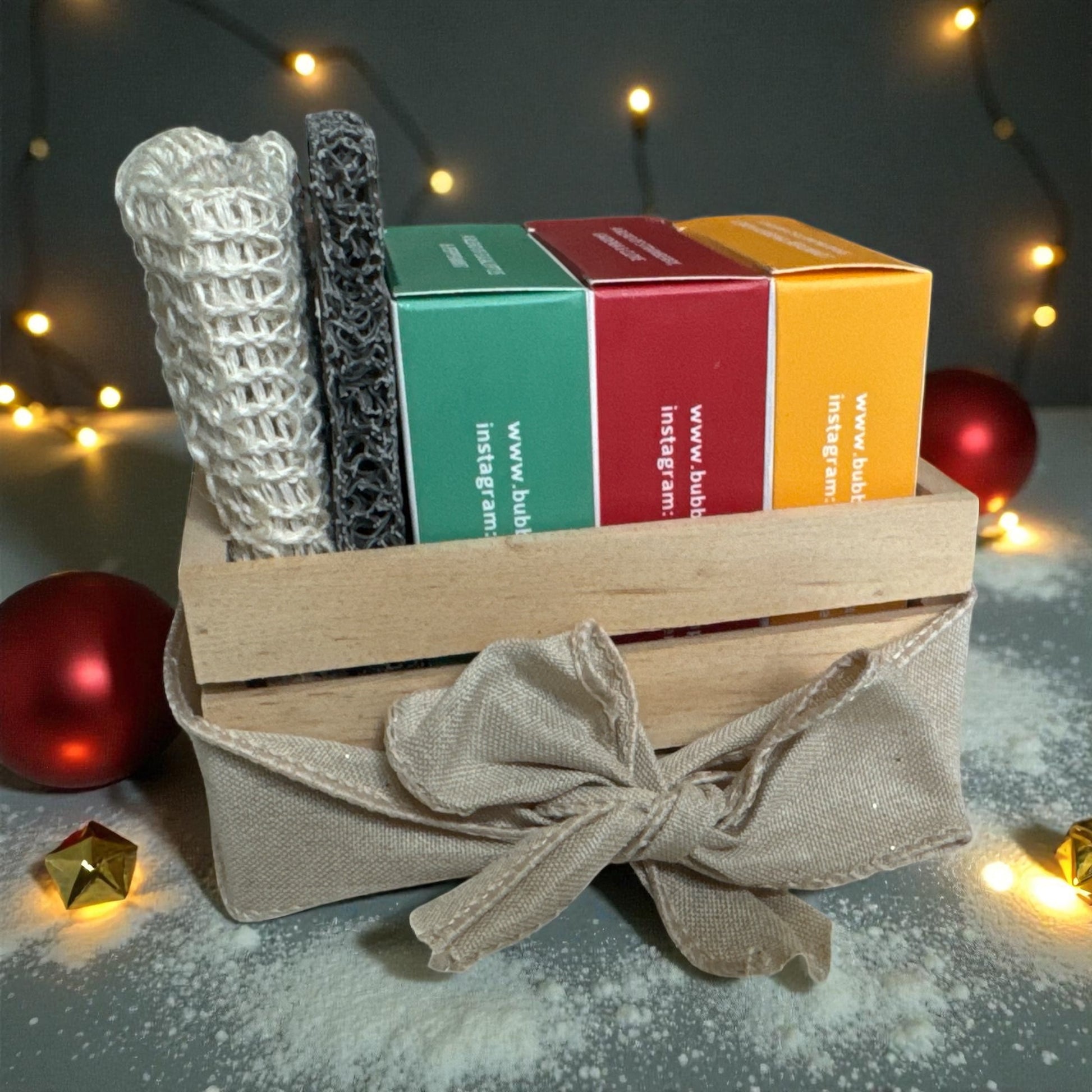 1 Soap Lift, 1 Soap Bag, 1 Wooden Box (ribbon color may vary)